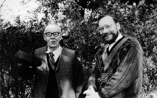 Pirmasis ir antrasis „Varpų“ redaktoriai – Kazys Jankauskas (kairėje) ir Leonas Peleckis-Kaktavičius. 1988 m. rugsėjo 14 d., Kaunas. Snieguolės Michelkevičiūtės nuotr.