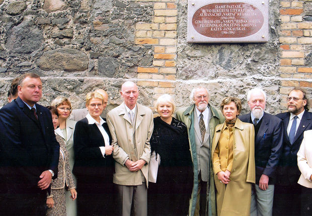 Memorialinę lentą ant Apygardos teismo rūmų sienos, skirtą pažymėti pirmojo „Varpų“ redaktoriaus gimimo vietą ir karo metų „Varpų“ redakciją, atidengus. Tarp teisėjų – rašytojai Mykolas Sluckis, Marcelijus Martinaitis, Jonas Mikelinskas, Leonas Peleckis-Kaktavičius. 2004 m. rugsėjo 10 d. „Varpų“ archyvo nuotr.